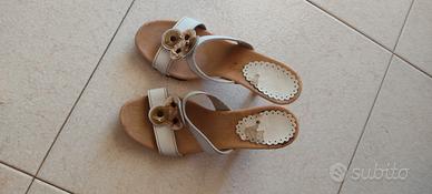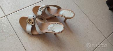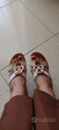 sandali estivi donna di colore bianco con inserto beige. numero 39 ma calza bene la 38.