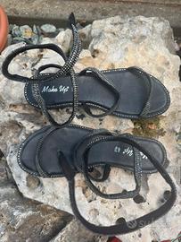 I cinturini sono decorati con piccoli strass o cristalli lucenti, che donano un effetto scintillante al sandalo.