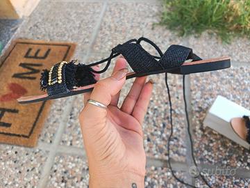 Sandali con lacci. Si possono legare "alla schiava", oppure fare solo più giri attorno alla caviglia.