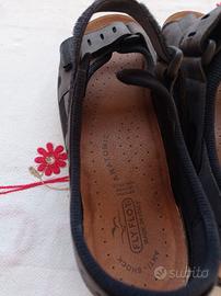 Coppia di sandali da uomo Fly Flot, nuovi e mai indossati (come si evince dalla suola pulita e dalle etichette interne ancora intatte). Questi sandali sono realizzati in pregiata pelle nabuk di colore grigio scuro con dettagli in tessuto nero, per un look casual e versatile. Caratteristiche principali: Marca: Fly Flot Condizioni: Ottime, mai indossati. Taglia: 43 Materiale: Pelle nabuk (grigio scuro/antracite) e tessuto Plantare: Anatomico e forato, per una maggiore traspirabilità e comfort durante tutto il giorno. Presenta la tecnologia "Anti-Shock". Suola: In gomma nera, flessibile e con un buon grip. Chiusura: Due cinturini con velcro regolabili sul collo del piede e un cinturino con fibbia regolabile dietro la caviglia, per una calzata personalizzata e sicura. Dettagli: Design ergonomico per un supporto ottimale. Provenienza: Prodotto originale, Made in Italy. Perfetti per la stagione estiva, offrono un comfort eccezionale grazie alla qualità artigianale italiana e alla tecnologia del plantare Fly Flot. Non esitate a contattarmi per ulteriori informazioni o foto aggiuntive. Spedizione rapida e sicura! #flyflot #sandaliuomo #pellenabuk #madinitaly #comodità #anti-shock #taglia43 #estate2024 #novità #originale
