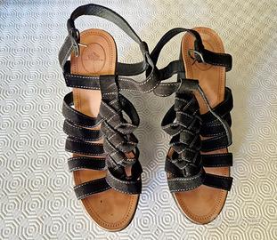 Sandali Fornarina camoscio e lurex, colore nero, N.38, zeppa dietro da 10,5 cm, plateau davanti di 3 cm.