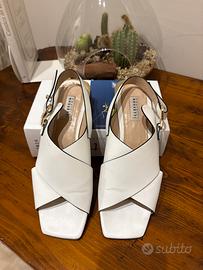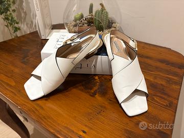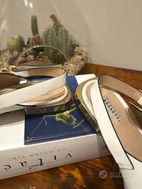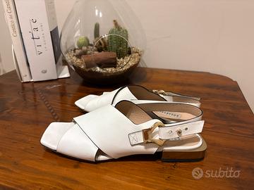 Sandalo in pelle bianca, fratelli rossetti con fibbia e tacco dorato, numero 38,5, ottime condizioni indossati, non più di cinque volte