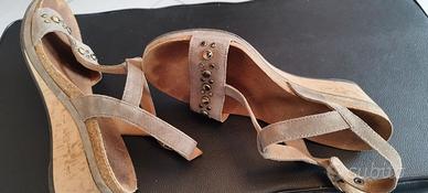 Sandali Frau zeppa e pelle camoscio 39 cinturino