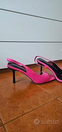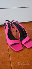 Bellissimi sandali fucsia vibrante del brand Sweet Shoes. Il modello è un elegante slingback (con cinturino posteriore elastico) caratterizzato da una moderna punta squadrata e un tacco a spillo sottile che slancia la figura senza rinunciare allo stile. Marca: Sweet Shoes Taglia: 41 Colore: Fucsia / Rosa acceso Stato: praticamente nuovo Dettagli: Tacco alto circa 6-7cm, materiale effetto satinato/tessuto. Perfette per cerimonie, eventi estivi o per dare un tocco di colore deciso a un look total black o denim. Vendo per inutilizzo Prezzo trattabile