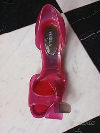 Vendo Sandali Furla in ottimo stato, tacco 10 cm, taglia 36 in plastica morbida, colore rosa fucsia.
