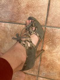 Spettacolari sandali in camoscio e pelle stampata (serpente), acquistati e mai indossati (come si puo vedere dalle foto).