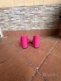 sandali fuxia con tacco largo cinturino in strass colorati e lacci alla caviglia nuovi usati solo una volta per servizio fotografico