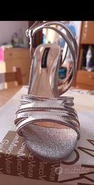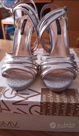 Vendo sandali alti, con tacco e plateau color argento, con brillantini, di Gianmarco Vanturi. Comodi, utilizzati una sola volta per un matrimonio, tenuti bene. Taglia 39. Per informazioni, contattami in chat ๐๐ ๐ฅฟ๐๐๐