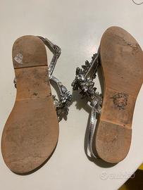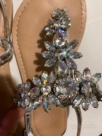 Sandali gioiello infradito cinturini pelle argento misura 37 Bellissime pietre trasparente