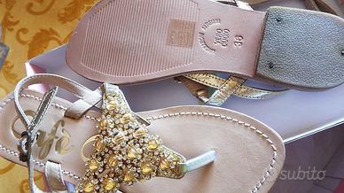 Sandali gioiello donna in pelle, lavorazione artigianale, suola in vero cuoio, numero 36, mai usati. Formula visto e piaciuto. Zona Pescara