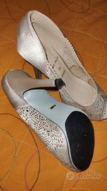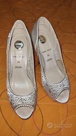 Sandalo gioiello color rosa cipria con Swarovski. Utilizzate in una sola occasione per poche ore. Vera pelle e suola in touch Memory. Vendo perché non mi piacciono ma sono di ottima qualità. Prezzo originale 90 euro circa