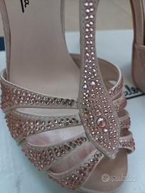Dettagli estetici: Listini interamente ricoperti di strass luminosi in tinta e cinturino alla caviglia con fibbia dorata regolabile.