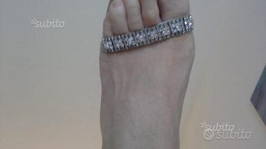 Sandali gioiello Scheilan originali, numero 39, stringati alla caviglia da sottili laccetti colore argento, in tinta con la calzatura, impreziosita da tantissimi cristalli riuniti in quadrati simmetrici, tacco alto 6 cm. In perfette condizioni.