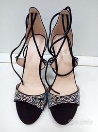 Scarpa sandalo gioiello NUOVA nera, allacciatura alla caviglia, interamente rivestita di cristalli swarovski, misura 36, tacco 12. MAI utilizzata, nuova, vendo a Euro 70,00 valore 140,00. Sandali dal grande impatto visivo.