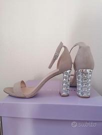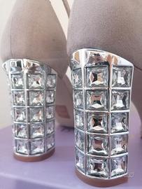 - Meraviglioso tacco con diamanti quadrati, tacco a blocco comodo alto 8,5 cm circa