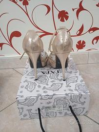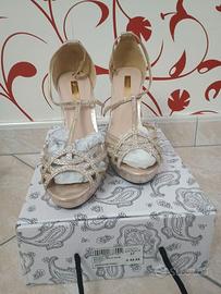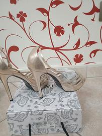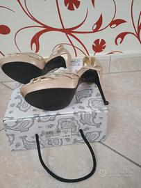 Vendo elegantissimi sandali gioiello firmati Tata Italia, numero 37, color oro con finitura glitterata e listini impreziositi da luminosi strass. Le scarpe sono state indossate una sola volta per un evento e sono in condizioni pari al nuovo, come visibile dalle foto. Dettagli dell'articolo: Marca: Tata Italia Modello: Sandalo Gold Shim (RK1407-159) Taglia: 37 Colore: Gold (Oro) con strass Altezza: Tacco a spillo con comodo plateau anteriore per agevolare la calzata Stato: Come nuove, usate solo una volta Prezzo originale: € 49,95 (indicato sulla scatola)