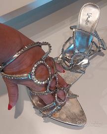 Sandali gioiello con applicazioni in Swarovski. Tacco 13. Leggera scollatura come da ultima foto.