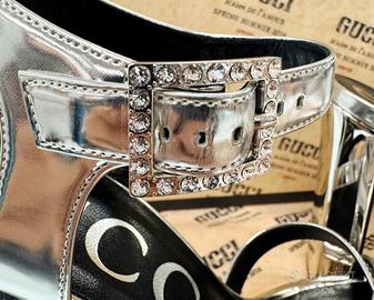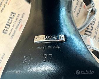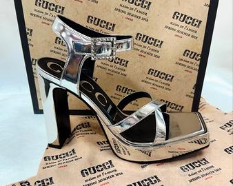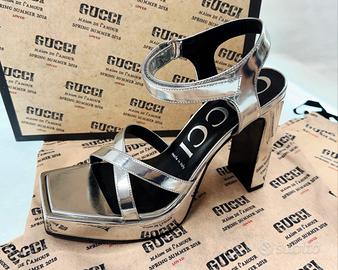 Sandali Gucci argentati a specchio, numero 37, con plateau, fibbia elegante e punta quadrata, in condizioni impeccabili, venduti con scatola originale come in foto.