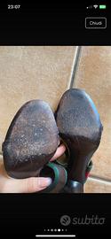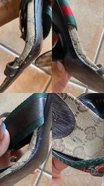 Bellissimo sandalo gucci vintage epoca tom ford in tela e pelle con dettaglio horsebite , numero 39 , segnalo tracce di colla vicino la suola e il sottotacco da rifare , no scatola