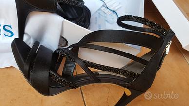 Sandali Guess by Marciano, neri con pailettes di uguale colore, eleganti, 36 Perfetti nella loro confezione originale. Collezione primavera estate.. Tacco 11 cm Occasione da 177 euro 45 euro.