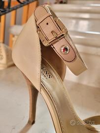 Vendo sandali Guess color beige e fibbie oro con cinturino alla caviglia numero 37,5