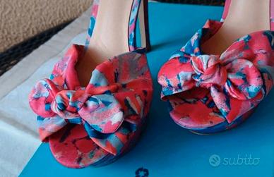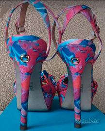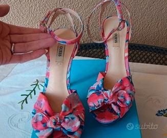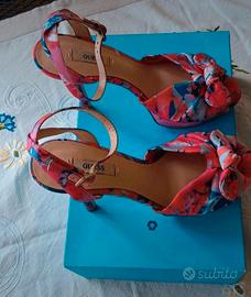 Sandali Guess in morbido Raso a fantasia floreale. Misura: 37 Tacco alto 12cm e plateau 4cm. Ottime condizioni Usate 2 volte