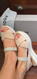 Modello con fasce incrociate e cinturino alla caviglia + suola platform (slancia ma comodissima!). Perfetti per tutti i giorni, dalla mattina alla sera. 💥 Pagati oltre 250€ in flagshipstore 💥 Indossati pochissimo 💥 Condizioni ottime (vedi foto reali) ✔ Taglia 38 ✔ Colore nude/beige (sta bene con tutto) ✔ Completi di scatola 👉 Scarpe di qualità altissima, non le solite sandaline economiche 👉 Ideali per chi vuole comfort + stile senza rinunciare al brand ⚠️ Prezzo competitivo per vendita veloce – no perditempo