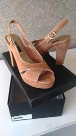 Sandali CINTI in camoscio con plateau- misura 37 - morbidi usati 2 volte Plateau 3,5 cm e tacco 11 cm