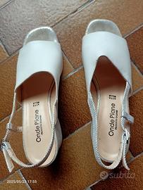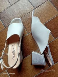 Sandali in pelle colore bianco e tacco argento, come da foto. nr 39