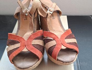 Sandali in pelle e corda con plateau, soletta morbida, molto comodi, n. 38. Vendo per non utilizzo.
