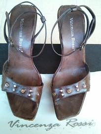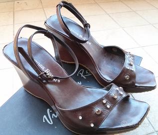 Vendo sandali in pelle e pitone con zeppa, taglia 37 donna, colore marrone testa di moro.