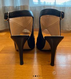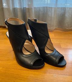 Sandali neri in pelle spuntati con cinturino alla caviglia e tacco a spillo 10 cm indossati solo 1 volta