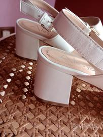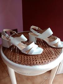 Vendo bellissimi sandali bianchi in pelle numero 40. Tacco comodo da 5cm. Pelle morbidissima con cuscinetto al tallone. Solo una volta indossati.