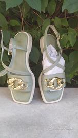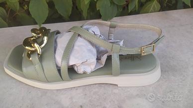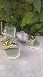 Sandali in pelle Soffice Sogno colore pistacchio e hardware dorato. Nuovi con cartellino. Taglia 37 IT. Made in Italy!