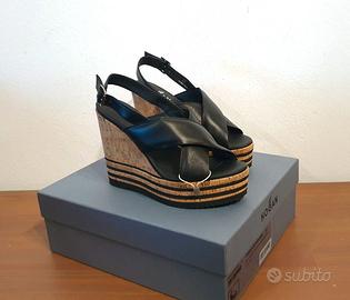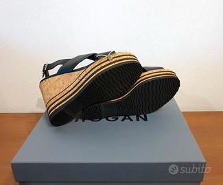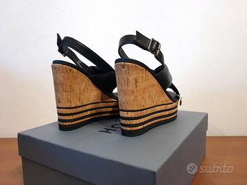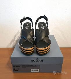 Sandali in pelle, tacco zeppa, nero, Hogan, n.37