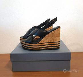 Con questo sandalo a zeppa di Hogan avrai la garanzia di indossare un paio di scarpe che non passeranno inosservate. Questo sandalo alla moda ha un tacco alto, che lo rende perfetto da abbinare a un abito da festa. Sta benissimo anche indossato sotto jeans o gonna. Il sandalo è realizzato al 100% in pelle ed ha un plantare morbido. Questa caratteristica, unita all'ampio cinturino sul collo del piede, migliora il comfort durante la camminata. Vestibilità regolare. Colore nero n.37 Prezzo retail €330,00 COMPOSIZIONE: 100% Pelle MISURE: Altezza tacco 12 cm, Altezza del plateau 3,5 cm DETTAGLI: Sandali, Tinta unita, Pelle