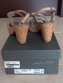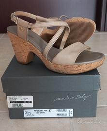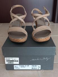 Sandali in pelle colore Tortora, con cinturino alla caviglia. - Misura 37. - Tacco cm 8. - Plateau cm 2. Poco usati in perfette condizioni. Vendesi per mancato utilizzo. Ancora nello scatolo originale.