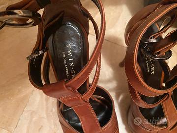 Sandali in pelle Twinset color cuoio misura 39 tacco 12 cm con cinturino