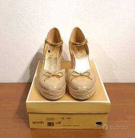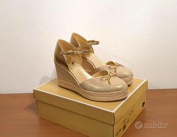 Sandali in pelle, zeppa, oro, Michael Kors, n.41,5