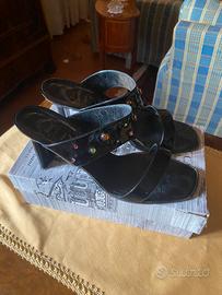 Sandali in vernice nera e pietre colorate di Rene’ Caovilla (Stra Venezia) con scatolo autentico