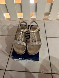 Sandali Inblu ragazza/donna 36 platino con pietre brillanti. Portati in un’occasione poi mai più messi. Mia figlia porta o infradito o scarpette. Motivo per cui tutti i dettagli sono perfetti neppure un dettaglio graffiato.