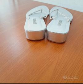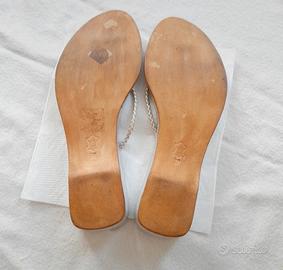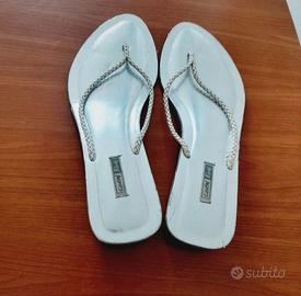 CORAL BLUE Sandali infradito argento, treccia in pelle, tacco 3, tg.38.