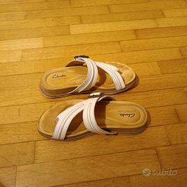 Sandali infradito flip flop marca Clarks in pelle, con zeppa. Taglia 37,5, colore bianco. Usati pochissimo e molto comodi.