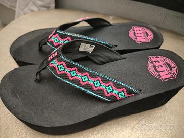 Sandali donna infradito Reef Sandy Hi, originali, nero e colori vari, con tacco alto a zeppa, eleganti e quasi mai indossati.