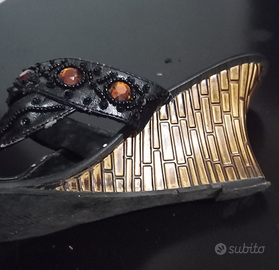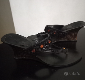Sandali infradito neri con strass arancio misura 39 tacco cm 8
