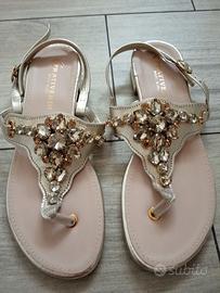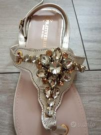 Sandali infradito gioiello realizzato in morbida Pelle colore Oro Platino.
