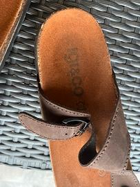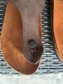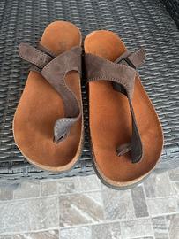 Sandali infradito ergonomici firmati IGI&CO, marchio italiano sinonimo di comfort e qualità. •Modello: Infradito con cinturino regolabile e fibbia metallica scura. •Materiale: Tomaia in morbida pelle color testa di moro. •Plantare: Anatomico in sughero e gomma, progettato per sostenere l'arco plantare e garantire una postura corretta anche dopo lunghe camminate. •Taglia: 40. Stato: Ottime condizioni, indossate poche volte. No scatola originale compresa!