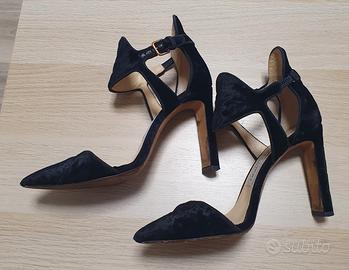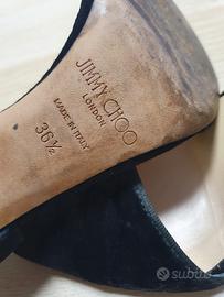 favolosi sandali Jimmy Choo in velluto a punta, eleganti e foderati in pelle.