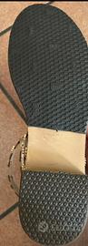 Sandali keys nr. 38 originali con scatola, nuovi, usati una volta. Modello flat, con borchie dorate sul bordo della suola e decorazioni a forma di fiorellini dorati sui cinturini. Stampa maculata, chiusura con cinturini alla caviglia.
