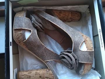Un paio di sandali in tessuto e sughero n. 37. Tacco 12cm e zeppa 4cm usate pochissimo